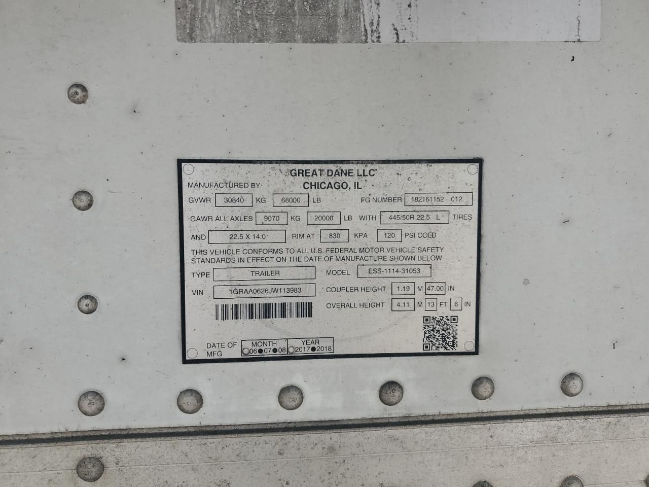 2018 Great Dane ESS-1114-31053 Refrigerated Van Trailer