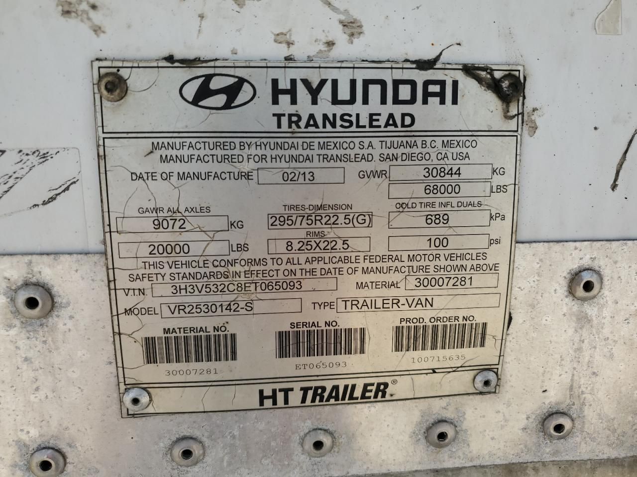 2014 Hyundai Translead VR2530142-S Refrigerated Van Trailer