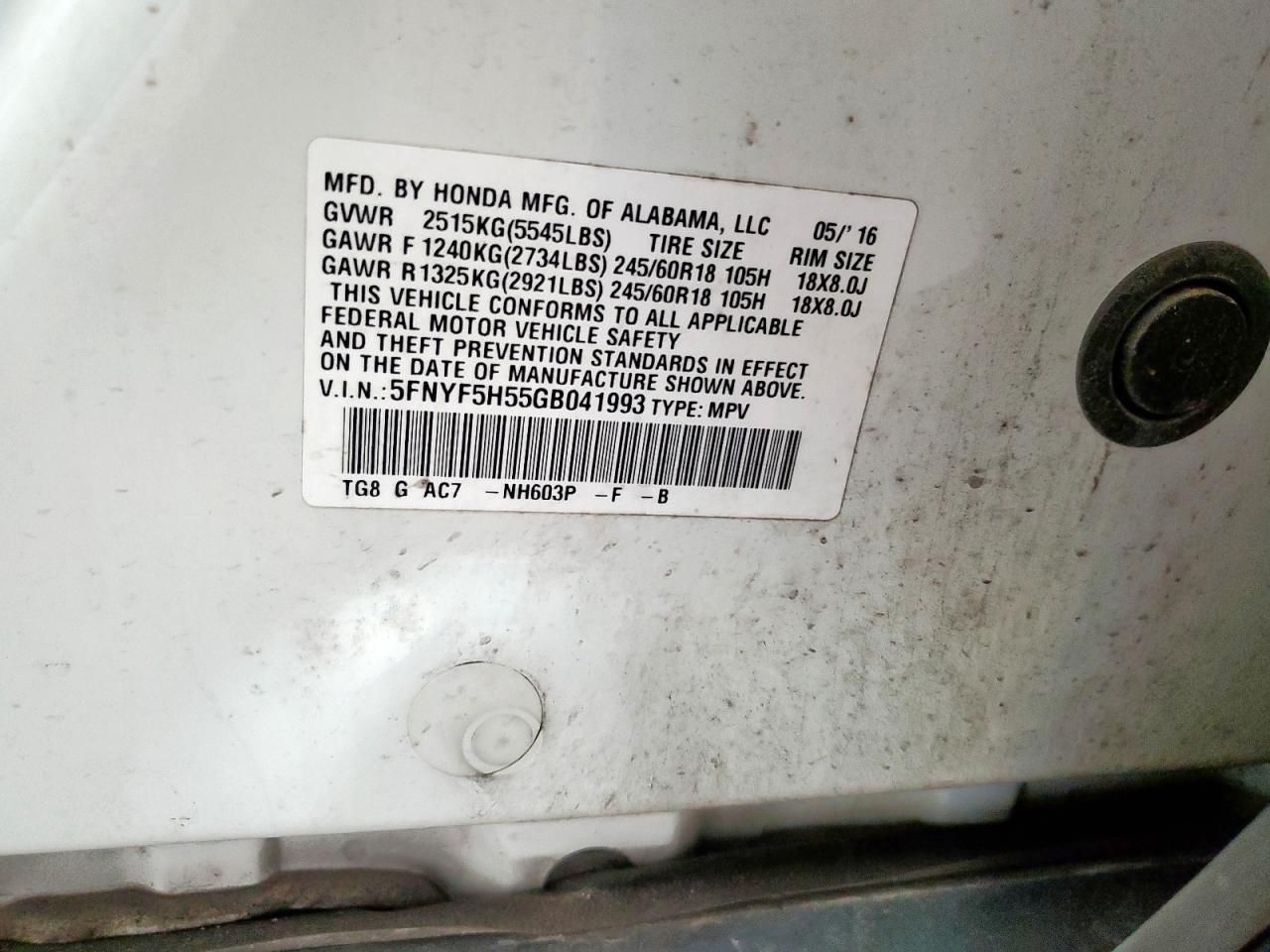 5FNYF5H55G*******