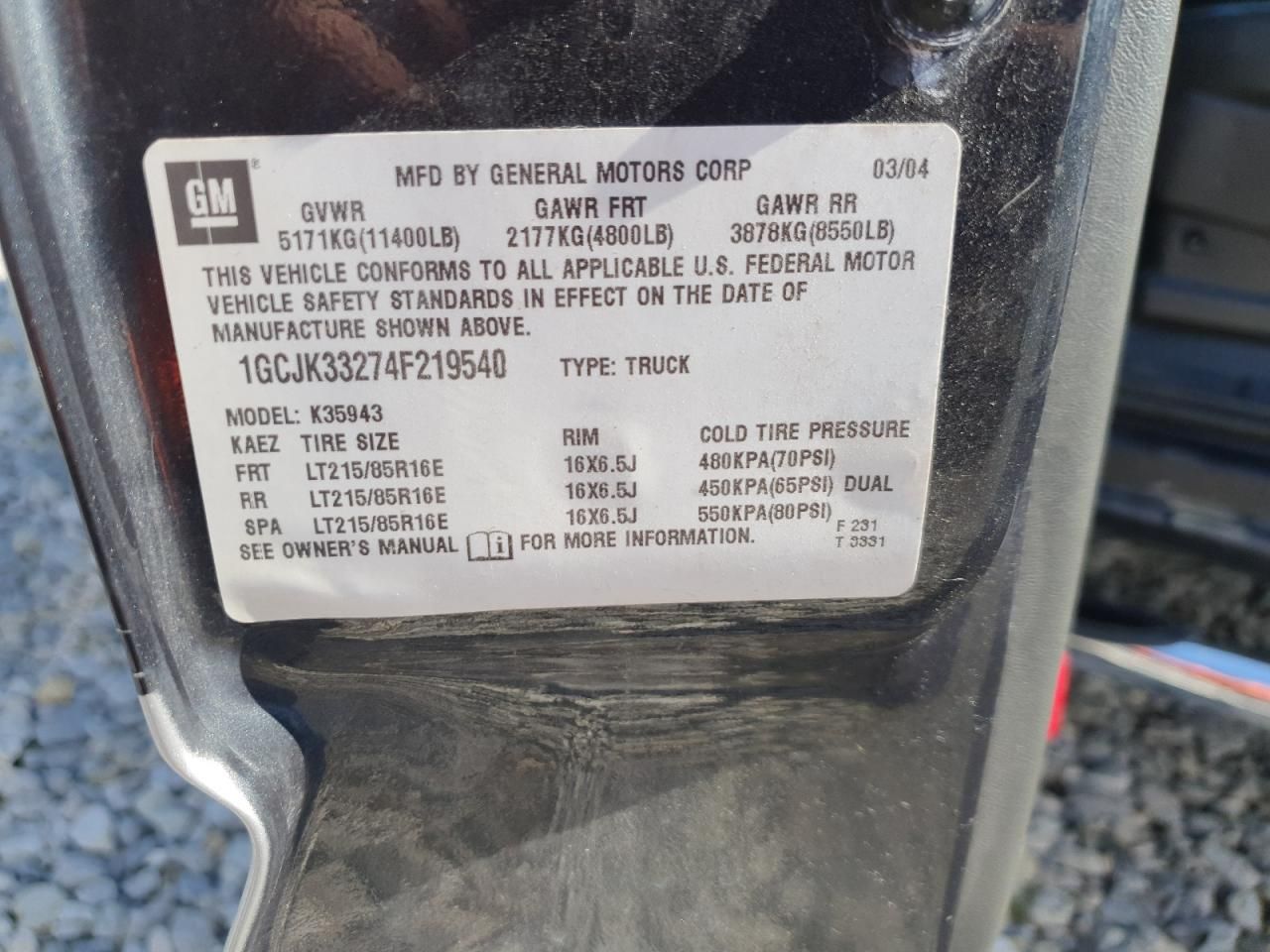 1GCJK33274*******