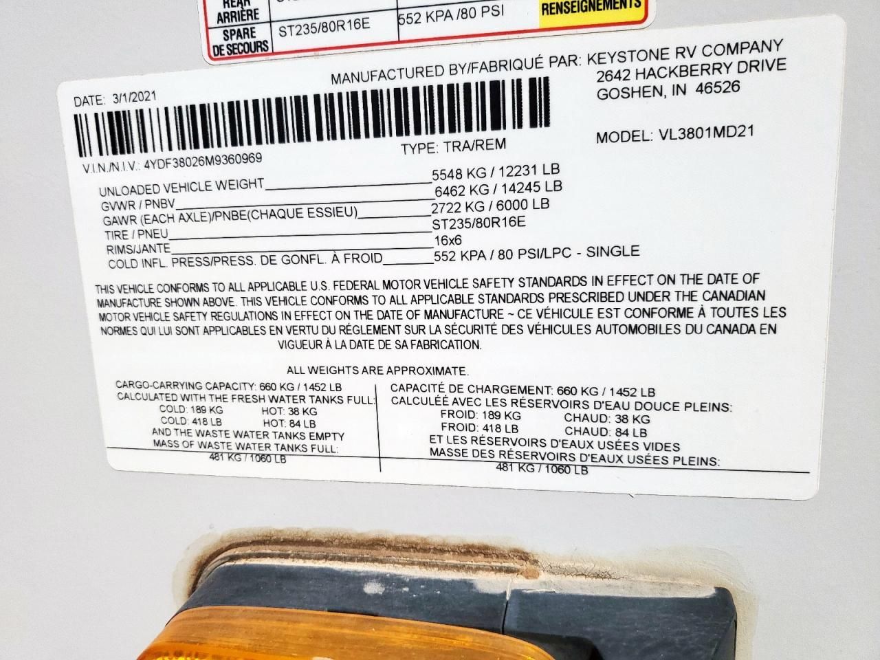 2021 Trailers Volante HP 3801