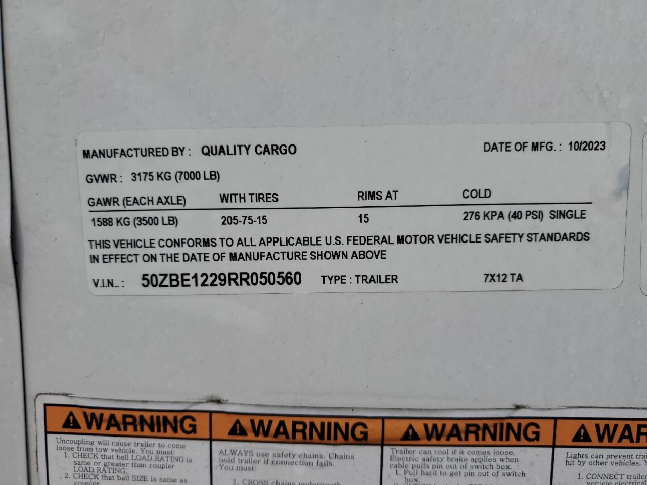 2024 Quality Cargo 2024 Quality 7X12 TA Enclosed Cargo Trailer