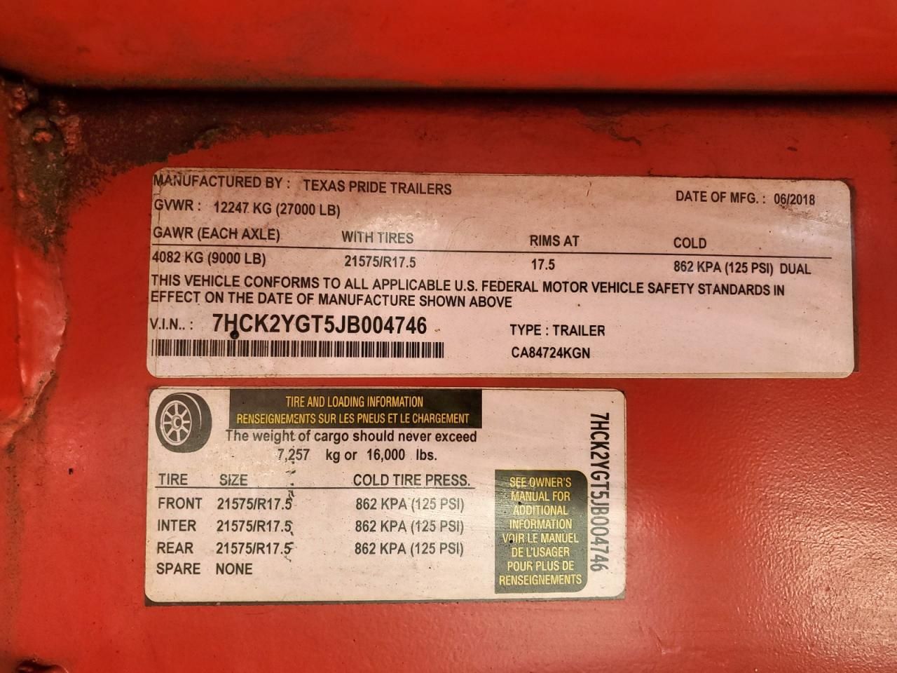 2018 Texp 2018 Texas Pride CA84724KGN Car Carrier